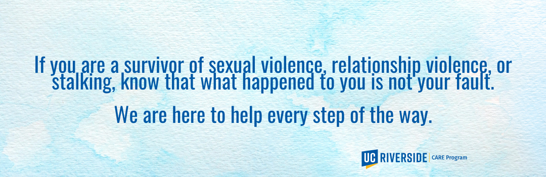 If you are a survivor of sexual violence, relationship violence, or stalking, know that what happened to you is not your fault. We are here to help every step of the way.